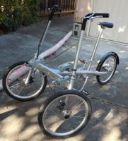 ![]() (het) bakfietsje small [box] cargo bike (de) driewieler |